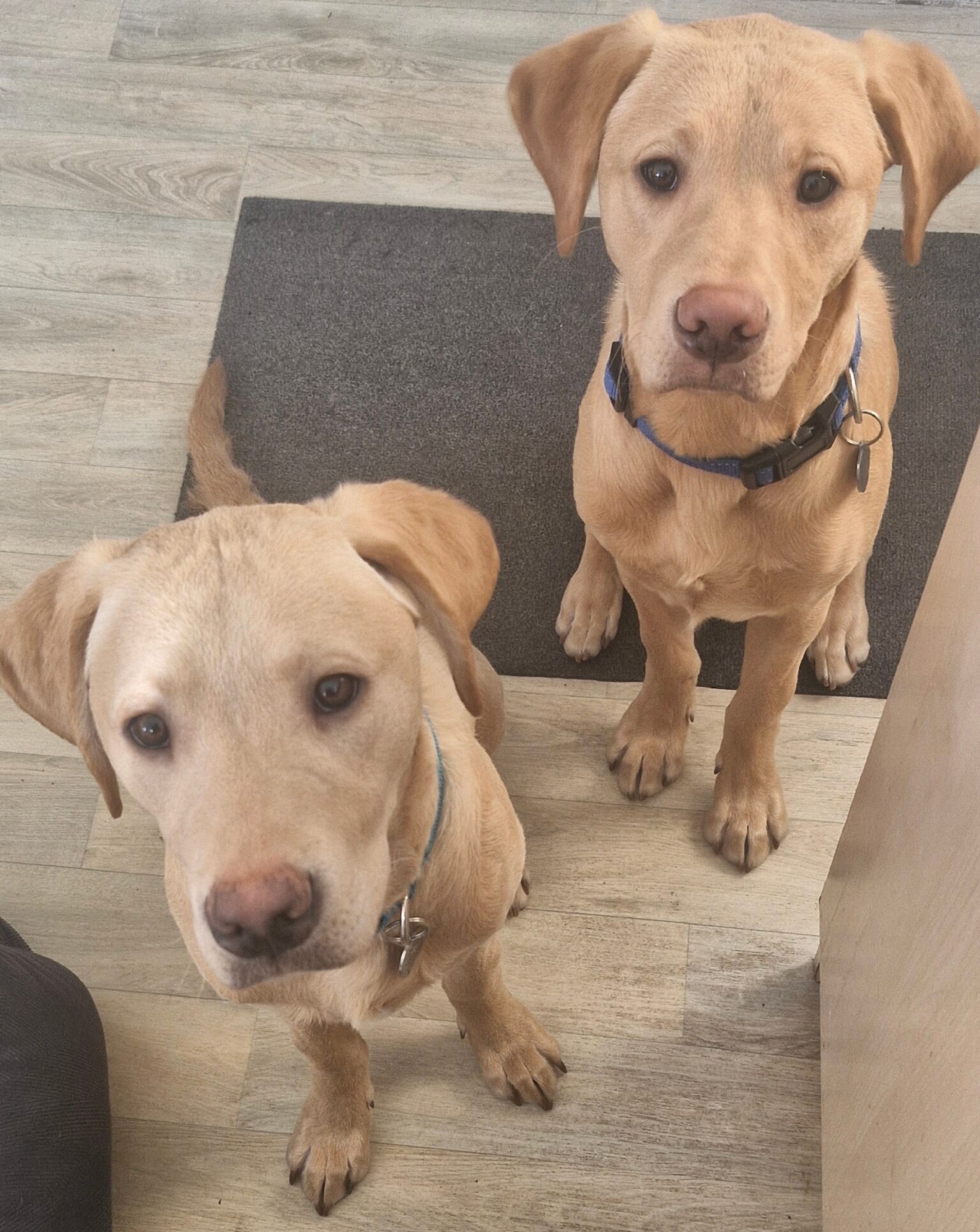 When we brought home not one but two puppies from the same litter, brothers Bobby and Chase a fox red Labrador and a yellow Labrador routine quickly became our saving grace. I found they were actually very quick at learning to do wees and poos outside, and even now at 16 months old, that routine is still firmly in place. I can open the back door and say “go wee wees, boys” and they know exactly what to do. From the very beginning, they went straight outside as soon as they woke up, and again after eating, and that consistency made all the difference. Accidents did happen just like when a toddler is learning to go from nappies to the potty but that’s all part of learning, not failure. Both of my pups are real pleasers, so whenever they went outside and actually did a wee or poo, I made a huge fuss of them, lots of praise, and a small treat every time. That positive reinforcement really helped it click for them, and it’s something that’s stayed with us as part of their daily routine.