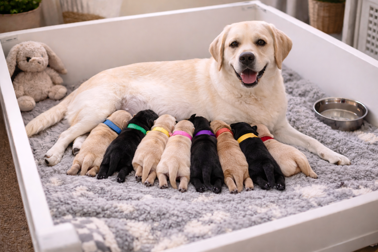 A calm, prepared environment makes a huge difference. Most dogs are wonderful mothers and instinctively know what to do, especially when they feel safe and supported.